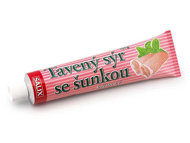 Přír.sýry,Eidam 40%,Gran Moravia 13%,voda,šunka 16%(vepř.kýta 82%,voda,sůl,dextróza,gluk.sirup,vývar,provens.koření,antioxidant E316,konz.prostř.E250,stabilizátor E450,E451),suš.syrovátka,tvaroh,máslo,tav.soli: E331,E339